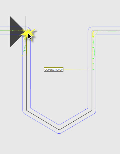Ctrl 키를 누르고 있는다, 그런다음 그래픽 디스플레이 창에서, 단면 위로 이동하고, 시작 지점을 보여주기 위해 클릭하고 끈다.