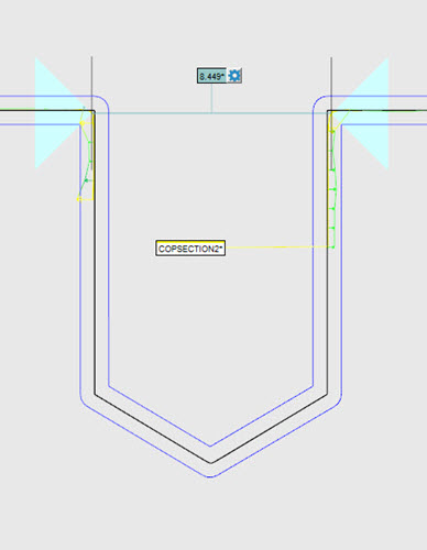 예를들어, 오프셋 계산으로 거리 게이지를 계산하지 않으려면, 제한 목록에서 평행 옵션을 선택한다. 이전과 같이 시작과 끝 지점을 클릭한다; 거리 게이지는 두 지점 사이에서 계산된다.