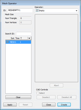 ) 를 클릭하거나, 메뉴 옵션 연산 | 메쉬 | 비우기 를 선택한다. 메쉬 연산자 대화상자가 나타난다.