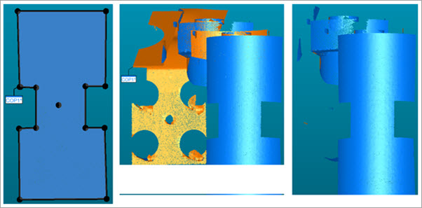 선택 뷰에서 정면을 향하는 점만을 선택하려면 점구름 연산자 대화 상자에서 정면 표시란을 클릭한다. 이 표시란을 비활성화할 때, PC-DMIS 는 전면 및 후면 뷰 모두에 있는 점을 선택한다.