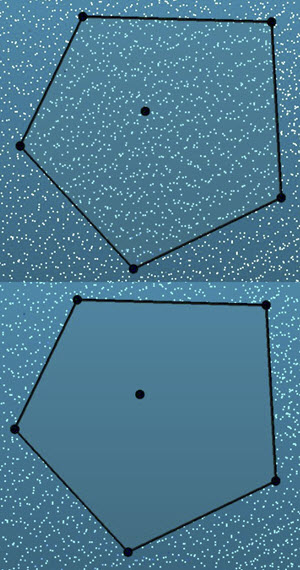 PC-DMIS는 안 옵션을 선택할 때 엄밀히 다각형 선택 내에 있는 점구름 데이타의 부분 집합만을 포함한다.