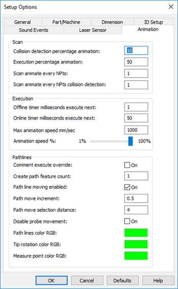 또한 이 값을 PC-DMIS 설정 편집기에서 설정할 수 있다. 상세 정보는, PC-DMIS 설정 편집기 문서의 "MaxAnimationSpeed"를 참조한다.