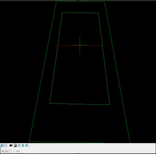 레이저 프로브 조정, 스캔, 및 자동 특성 측정 중에 레이저 뷰를 사용할 수 있다. 이 탭은 PC-DMIS 가 어떤 정보를 사용하는지를 보여준다. 스캔 절차중에, PC-DMIS는 절단 영역 직사각형 외부의 데이타를 무시한다. 상세 정보는, "레이저 프로브 도구상자: 레이저 절단 영역 속성 탭" 에서 화면 캡처를 참조한다.