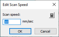 이 표시란을 선택할 때, 스캔 속도 수정 대화 상자를 열기위해 빈 공간에서의 속도 입력 상자를 클릭한다.