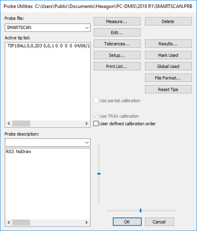소프트웨어는 프로브 유틸리티 대화상자를 보여준다. SMARTSCAN을 활성 오프라인 레이저 프로브로 선택한다.