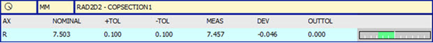 您可以从编辑窗口更改量规的公差,或按下 F9 键查看 2D 半径量规对话框。