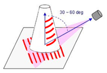 激光传感器沿圆锥长度扫描。传感器在圆锥的矢量方向移动。激光必须接近于垂直该矢量。