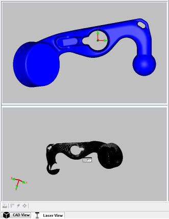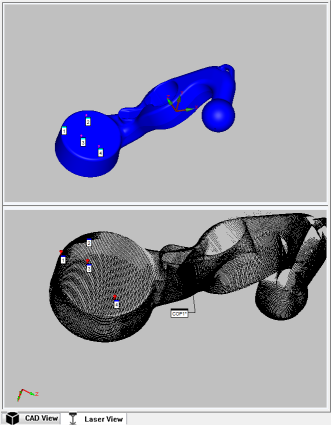 CAD模型和点云的临时分屏视图将显示在图形显示窗口中。您可以使用此拆分屏幕视图直观地看到坐标系。从参考下拉列表选择参考点;通常 CAD 模型本身或定义的 COP 可用。