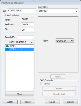 如果结果可以接受,请单击创建按钮。PC-DMIS 向测量例程添加 COP/OPER,FILTER 命令,该命令包含与所应用的过滤器相关的所有信息。