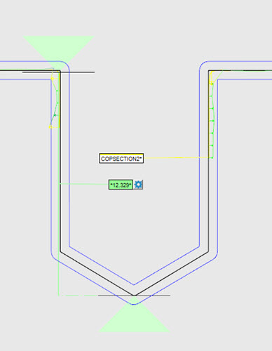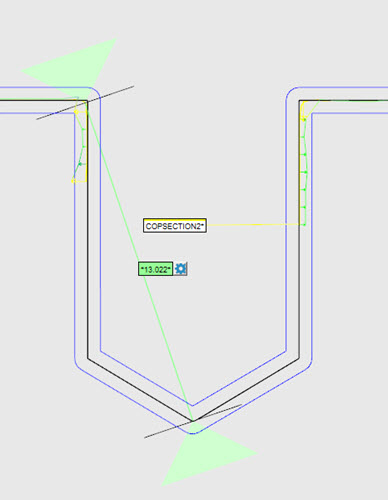 在这种情况下,PC-DMIS 在距离值前面加上星号。这表示一个或多个边不被测量。该值显示标称(灰色箭头侧)和测量侧之间的距离。