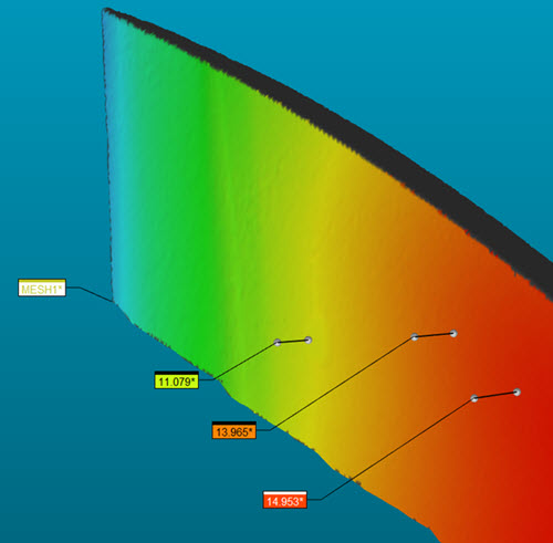您可以从CAD和图形设置对话框(编辑 | 图形显示窗口 | OpenGL)上OpenGL选项卡的点云区域更改注释点的大小和连接线的厚度。有关详细信息,请参阅PC-DMIS核心文档“设置首选项”一章中的“更改OpenGL选项”。