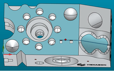 使用激光测头定向、视场和扫描设置,软件将激光线投影到 CAD 模型上。这样您可轻松看到模拟的点云是否可接受并作出更改(如果个别扫描需要)。PC-DMIS 在 COP 中保留模拟的点。