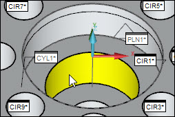 一旦所有这些圆特征以黄色突出显示,请单击该特征以创建突出显示的圆形特征(3)。