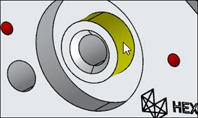 按住Shift键并将指针悬停在较大内部圆柱的内表面上。您可能需要放大零件才能选择圆柱: