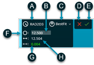 2D 半径量规显示组件显示半径的标称值、测量值和偏差值