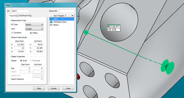 将光标移动到第二个位置,然后单击以定义终点。移动光标时,长度值在图形显示窗口中更新。如果所选对象(COP 或网格)包含数据,则显示的长度为测量值。如果所选对象为空且使用 CAD 模型,则显示的长度值为标称值。