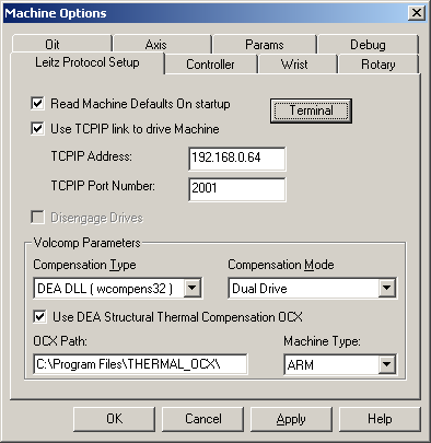 Compensation Type - Select from the following Volcomp methods: NONE, DEA Standard, DEA DLL (wcompens32), ASI, or Brown & Sharpe.