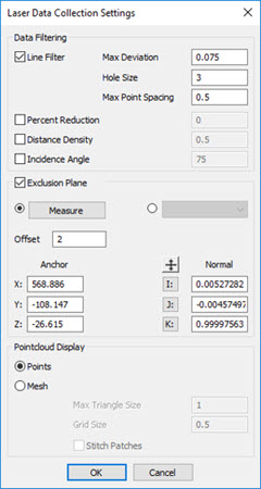 有关激光数据收集设置对话框的详细信息,请参阅 PC-DMIS 激光文档中的“激光数据收集设置”。