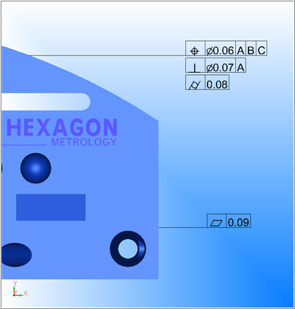 These CAD GD&T callouts are not Feature Control Frame (FCF) dimensions. CAD callouts instead reside directly in your CAD model and appear as CAD elements. They do not initially perform any function inside of PC-DMIS other than providing visual information in the Graphic Display window. However, you can import them as GD&T FCF dimensions into your measurement routine. For information on how to do this, see "Importing CAD GD&T Callouts" below.