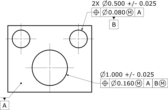 When you reference a datum with a material boundary modifier, the geometric tolerance command needs to compute the size of the material boundary unless the material boundary size is specified. The material boundary size is based on the size tolerance of the datum feature and the applicable geometric tolerances.