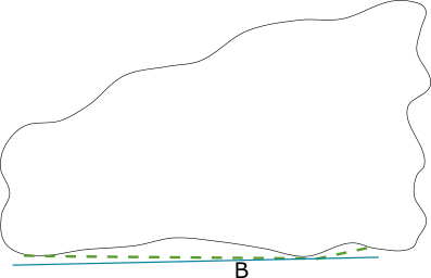 For datum widths, the measured surface points are projected to the center-plane of the surface envelope, and the axis of the mating envelope is the minimal convex polygon that contains all the projected points.