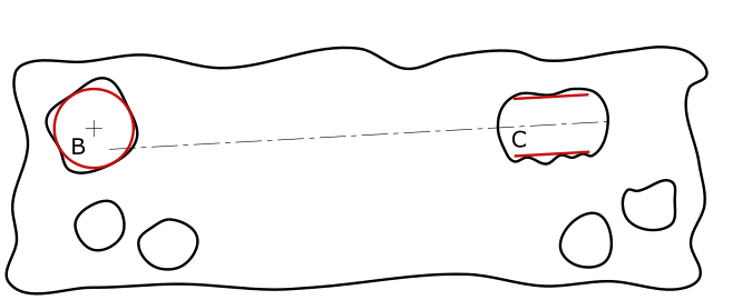 However, if the big hole has a large enough position error, the measured value will not be zero. Below is an illustration of such a case:
