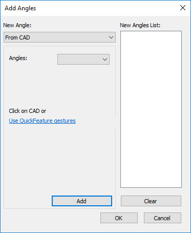 From CAD - This option is available only if CAD is available in the active measurement routine. This option lets you select the CAD surface and adds recommended angle into the New Angles List box.