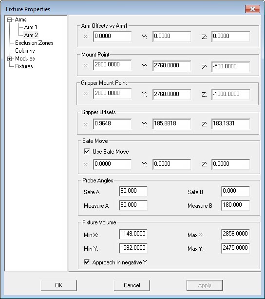 When you edit the properties for Arm2, you must clear or mark the Approach in negative Y check box according to the axes convention for the dual-arm system that you are using. For example, for standard systems such as the Vento, the software selects the check box when you set up the Arm2 parameters.