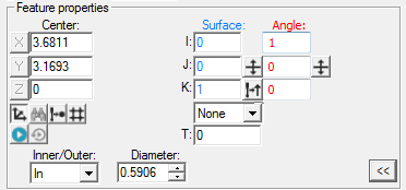 Center: This property specifies the XYZ values for the center of a Circle, Round Slot, Square Slot, or Profile 2D feature.
