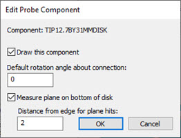 Dubbelklicka på komponenten skivmätspets (markerad i bilden ovan) för att öppna dialogrutan Redigera mäthuvudskomponenter.