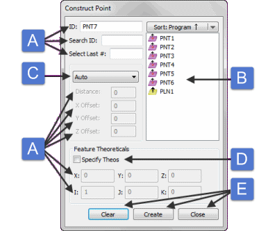 I bilderna nedan visas några gemensamma funktioner som förekommer i många dialogrutor i PC-DMIS.