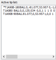 Klicka med vänster musknapp på de mätspetsar som ska kalibreras i listan Aktiva mätspetsar . När du väljer ett mätspets-ID visas ett värde som anger index på mätspetskalibreringsordningen bredvid ID-värdet.