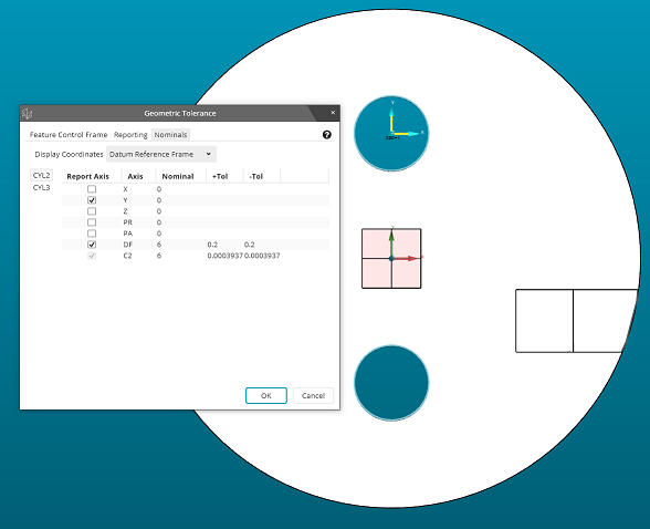 När du klickar på OK eller Skapa ändrar PC-DMIS koordinatsystemet som resultaten rapporteras i.