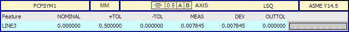 PC-DMIS konstruerar det toleranssatta elementet på samma sätt som ett toleranssatt element med en lägestolerans.