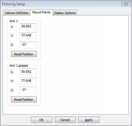 Fliken Startpunkter definierar säkerhetsläget som armen flyttas till när fixturprocessen är klar. Normalt dras armen upp från fixturerna.