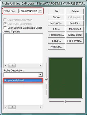 Click the No probe defined in the Probe Description area to populate the list.