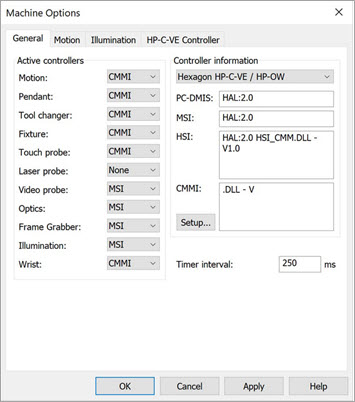 When you first start PC-DMIS after you install it, you should run it with administrator privileges. This ensures that the software properly creates the settings entries related to the active controllers in the Machine Options dialog box (Edit | Preferences | Machine Interface Setup):