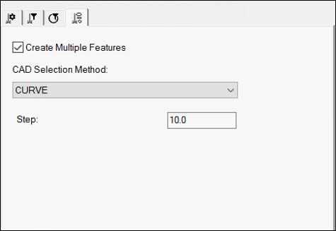 Birden Fazla Özellik Oluştur - Birden fazla özellik oluşturmak için modelde eğrileri seçmek için bu onay kutusunu seçin. Yüzey Noktası özellikleri için bunun yerine yüzeyler seçilir. Aşağıdaki uyarıyı unutmayın: