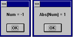 MsgBox "Abs(Num) =" & Str(Abs(a))