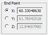 该区域显示了终点的XYZ值。您也可使用此区域定义或调整选定轴的值。其他两条轴根据交线计算。 |