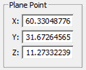 该区域显示了平面点的XYZ值。您可以在X、Y 和 Z 框中手动修改这些值。如果您指明的点没有位于CAD曲面,则实际使用的点将会投影到CAD模型上。 当您完成手动编辑这些值并从平面矢量选择区域选择边缘选项按钮后,用作平面矢量的曲面边界矢量将使用与先前平面矢量最接近的矢量。换句话说,与先前平面矢量最接近平行的边界矢量将用作新的平面矢量。 |