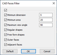 最大视角复选框和输入框 - 选中此复选框后,您可以在最大视角输入框中键入一个条目。这允许您框选当前 CAD 视图中角度小于或等于输入值的所有面。