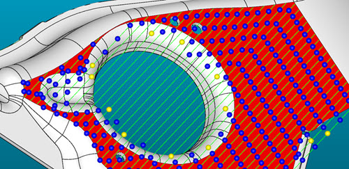 此图中的黄色控制点是 PC-DMIS 在执行 UniScan 时为其分配更快速度的控制点: