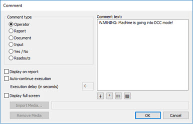 在注释文本框中键入该文本:警告,测量机即将进入 DCC 模式!