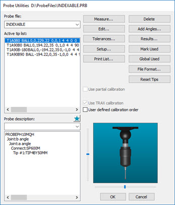 选择一个测头。它必须具有本主题顶部提到的两种校准的测尖。经过校准的测头文件在活动测尖列表中的测尖旁边没有星号。