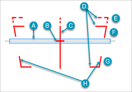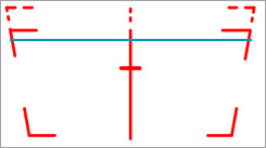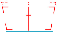 如果您没有选择扩展 FOV 选项,并且将激光传感器放置在视觉指南的标准 FOV 区域(实线)中,则视觉指南不会闪烁。