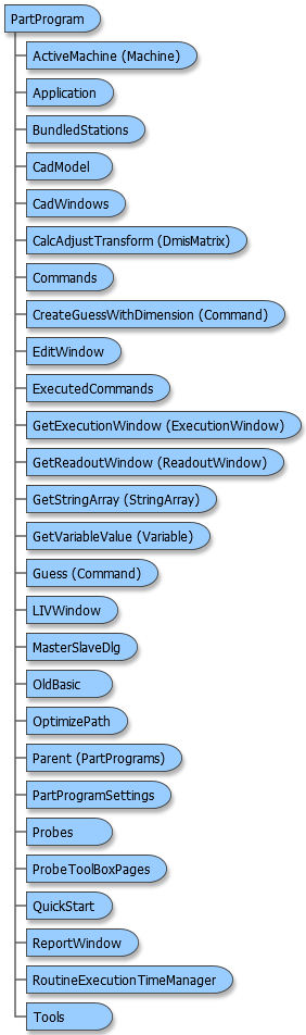 PartProgram Object DescriptionThe PartProgram object represents a measurement routine currently available in PC-DMIS. This is the main object used to manipulate measurement routines. Object Model See AlsoPartProgram Members