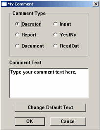 This script functions nearly identically to the Comment dialog box in PC-DMIS, with one exception. It allows you to change and store the default comment text that appears, thereby demonstrating how to write and read text strings to and from a file.