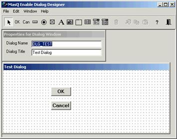 The Dialog Editor menu option launches the MasQ Enable Dialog Designer: