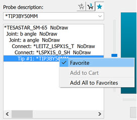Zum Warenkorb hinzufügen - Dieser Artikel fügt die Komponente dem PC-DMIS Warenkorb hinzu. Dieses Element ist nur verfügbar, wenn die Tasterkomponente eine Hexagon-Teilenummer hat. Diese Option ist nicht verfügbar, wenn die Komponente bereits in den Warenkorb gelegt wurde.